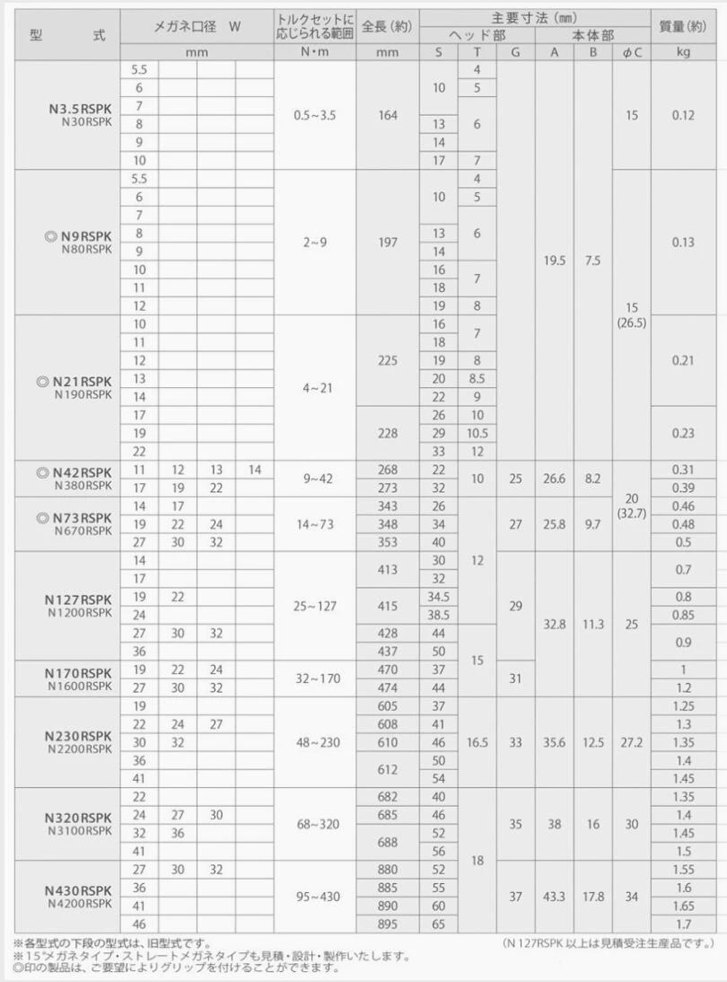 日本KANON 眼镜式单功能扭矩扳手 N-RSPK / N-RSPKH