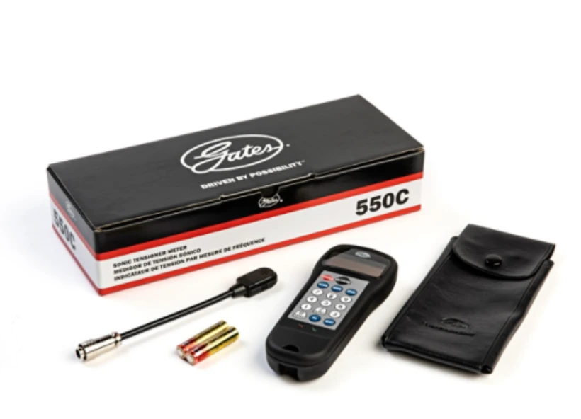 Gates SONIC 550C 皮带张力计,它能以极高的精度立即测定皮带装置的负载和张力。该设备适用于 V 型皮带、V 型多楔带或同步带,它通过传感器分析皮带发出的声波,并即时提供精确的张力测量结果。这对于确保皮带传动的性能和可靠性至关重要。
